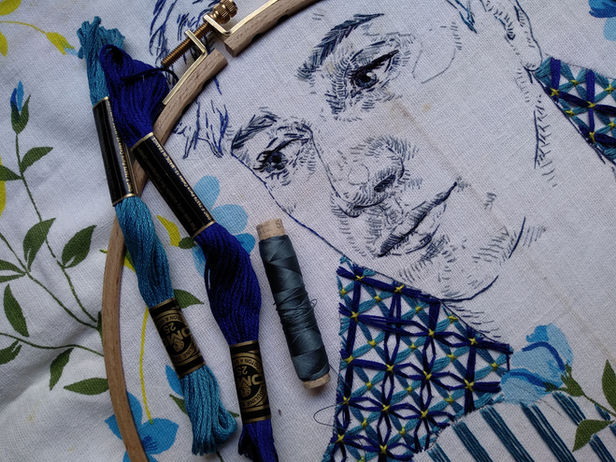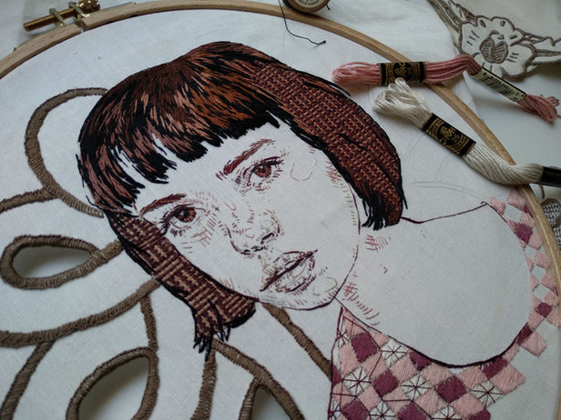 Mi pasión por la línea me llevó a explorar diferentes maneras de dibujar y así llegué al bordado. Desde que aprendí a bordar se revolucionó mi forma de trabajo y fui cambiando de herramientas buscando un dibujo más matérico al que pueda tocar y sentir de forma física. Disfruto mucho de los procesos y tiempos que tienen las labores de aguja. Pero lo que me mantiene bordado constantemente hace más de siete años, es la búsqueda desafiante que encuentro en cada nuevo dibujo.